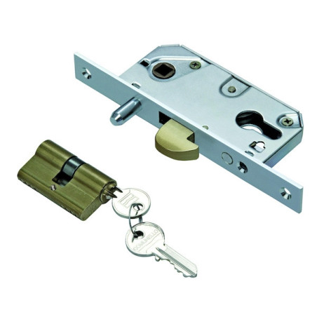 Serrure à crochet plat avec cylindre. Livrée avec gâche.