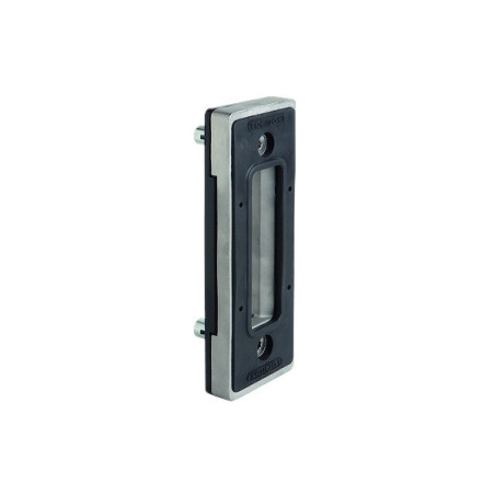 Gâche en acier inoxydable pour profil carré. avec fixation QUICK-FIX pour serrure de coulissant. Auto-ajustable de 9 mm vers la gauche et la droite pour assurer un ancrage sûr et simple du pêne. L'arrêt en caoutchouc évite tout endommagement de la porte. Largeur minimum du profil : 80 mm.