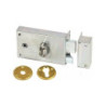Le coffre de grille horizontal comporte :• Un coffre acier bichromaté 141 x 87• Un rappel du demi-tour à la clé• Un pêne allongé en zingué blanc de 5 mm.• Un fouillot carré de 7 mm.• Un axe de 60 mm.• Un entraxe 57 mm.• S'utilise avec une porte de 40 mm d'épaisseur et un cylindredécentré de 90 mm (30 x 60 mm).