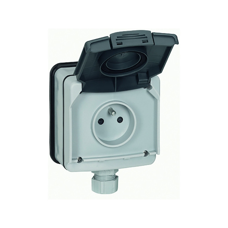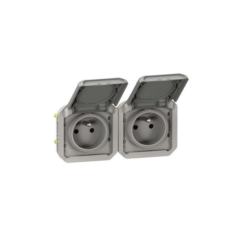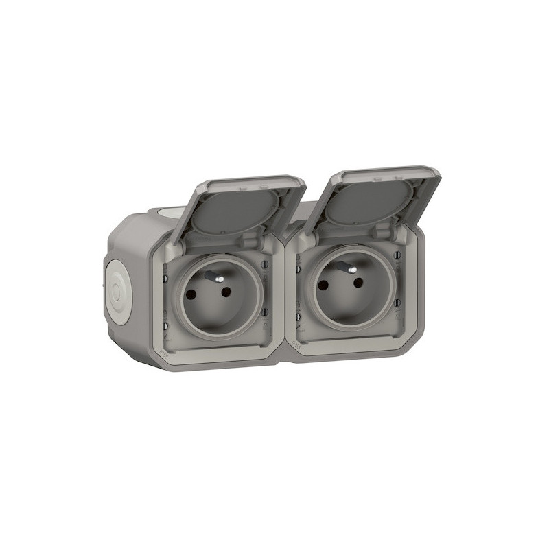 Double prise de courant précâblée étanche 2P+T PLEXO horizontale complète pour fixation saillie - gris 5/5 33,84 € Ajouter au panier
