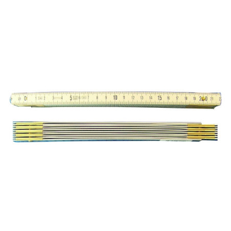 Mètre pliant en aluminium avec 10 branches. une graduation recto/verso et des ressorts laitonnés.