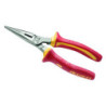 Pince 1000 V. Becs fins offrant une parfaite accessibilité dans les espaces confinés (armoires électriques). Becs finement striés avec coupe-fil latéral. Poignée spéciale ergonomique pour un meilleur confort lors de coupes longues et très répétitives.