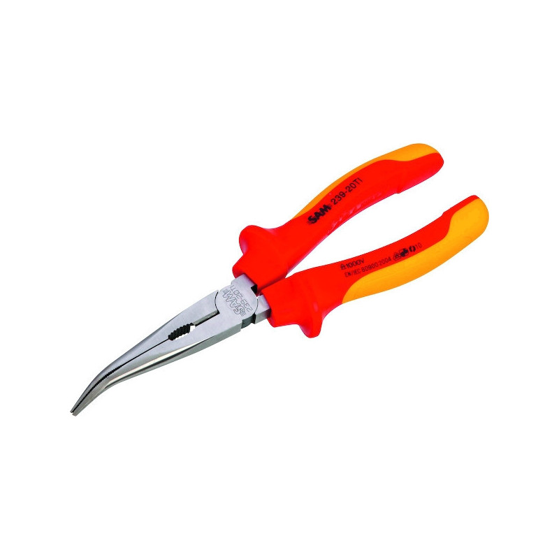 Branches avec gaines bi-matière. Forgée en acier au chrome vanadium. Bec strié pour un meilleur serrage. Bec coudé à 45°. Fonction coupe fils intégrée pour fil acier dur. Conforme VDE.