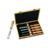 Dans un coffret. Ciseaux manche bois 6 mm - 10 mm - 15 mm - 20 mm - 25 mm.