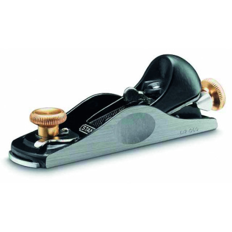 Petit rabot professionnel à semelle en fonte usinée. Inclinaison du fer à 13°. Réglage rapide : molette de profondeur de fer. lumière réglable pour travaux fins ou de dégrossissages. Bloc d’arrête en fonte. joues rectifiées et gorges latérales de préhension. Finition laquée noire.