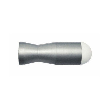 Butoir mural composé de 2 parties : Corps en aluminium massif anodisé et embout amortisseur en élastomère.Longueur : 80 mm.Diamètre : 26 mm.Livré sans vis.