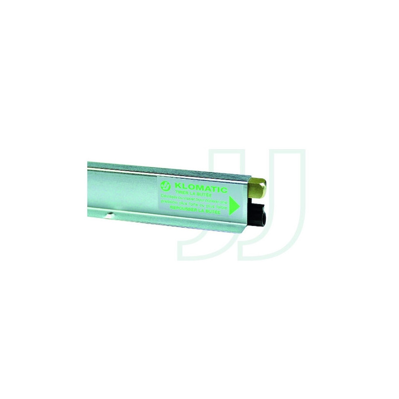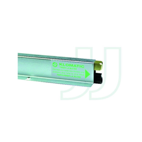 Plinthe automatique encastrable KLOMATIC 89 KEJ pour bas de porte. en tôle alu zinc anti-corrosion. Fonctionnement type guillotine avec joint caoutchouc. Encastrée en bas de porte. Assure une étanchéité parfaite. Type guillotine. côté paumelle. Réglage de la course de fermeture au quart de tour grâce à sa butée carrée en laiton. Longueur standard de 0.63 à 1.23m de 10cm en 10cm. chaque longueur pouvant être recoupée de 9.5cm maxi (à partir de 0.63m). Calfeutre un jour jusqu’à 13mm. Equipée d’un joint néoprène souple. Embase de 34mm. hauteur de mortaise de 27mm. largeur 12mm.
