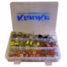 Coffret d’assortiment de bornes à ressorts.Boîtier en polycarbonate transparent côté couleur.Auto extinguible.Température d'utilisation : -30 à 105°C.Contient :25 bornes 2 entrées.40 bornes 3 entrées.25 bornes 4 entrées.20 bornes 5 entrées.12 bornes 8 entrées.