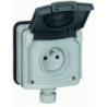 Prise de courant 2P+T avec volet Plexo. complet.Boîtier simple livré avec presse-étoupe ISO 20.Bornes livrées ouvertes. vis inox mixtes imperdables.Garantie 2 ans