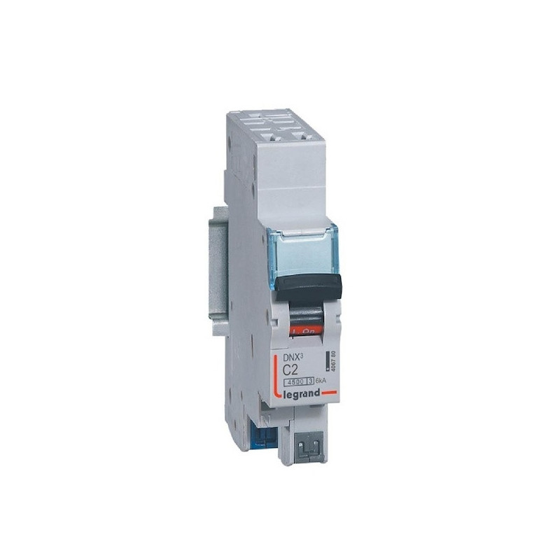 Disjoncteur phase neutre DNX3 - arrivée et sortie borne automatique - 4500A - 6kA - 1P+N - 230V - 2A courbe C - 1 module