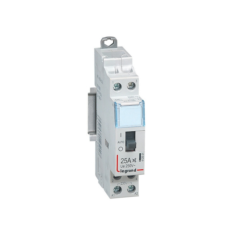 Contacteur domestique CX³ silencieux bobine 230V~.Ces contacteurs sont équipés d’une manette autorisant l’arrêt ou la marche forcée. avec un retour de la marche forcée en mode automatique à l’apparition de la commande électrique.Accepte le passage du peigne d'alimentation jusqu'à 25 A.Utilisé généralement pour alimenter une charge pendant des périodes de tarification « heures creuses » d’EDF.Garantie 2 ans