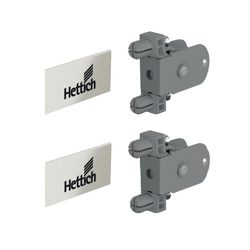 La gamme : "Le kit comprend :-1 paire de profils double paroi ArciTech (gauche et droite),-2 attaches façade à enfoncer,-2 caches en plastique avec logo Hettich,-les vis de fixation." Commandez séparément les habillages latéraux, les coulisses et les parois arrière acier OU raccords arrière. Fond et dos non fournis. •