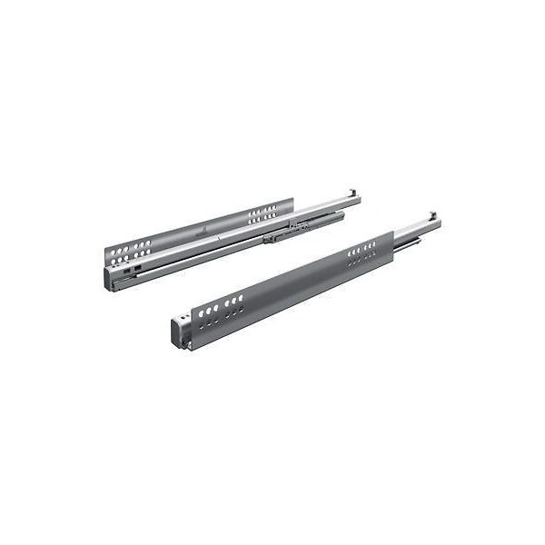 La gamme : Montage par emboîtement : poser simplement le tiroir sur le rail de guidage et le glisser en place. Parfaite stabilité latérale et en hauteur. Les chemins de roulement résistants offrent un guidage optimal aux billes en acier : précis et fidèle. Sans entretien grâce aux profils auto-nettoyants et chemins de roulement. En acier zingué brillant. •