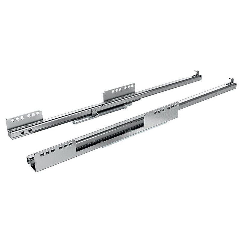 La gamme : Montage par emboîtement : poser simplement le tiroir sur le rail de guidage et le glisser en place. Parfaite stabilité latérale et en hauteur. Les chemins de roulement résistants offrent un guidage optimal aux billes en acier : précis et fidèle. Sans entretien grâce aux profils auto-nettoyants et chemins de roulement. En acier zingué brillant. •
