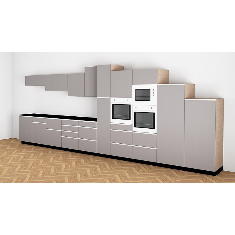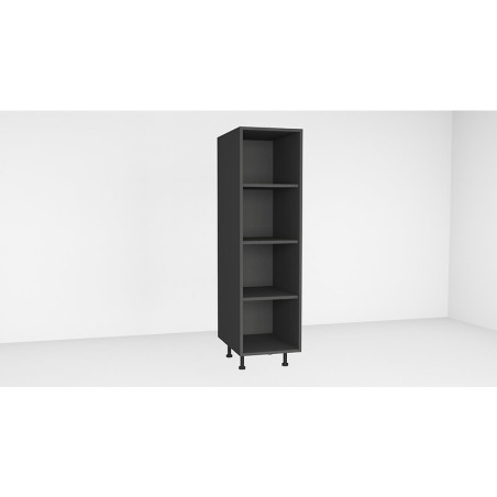 La gamme : Coloris blanc, gris anthracite, gris alu et chêne.(nous consulter).Possibilité de côtés de remplacement coloris gris alu pour les caissons blancs uniquement.Caissons à visser ou à coller. Caissons en panneau de particules mélaminé : épaisseur 19 mm, densité 650 kg/m3.Chant façade en PVC 1,2 mm. Tous les autres chants en PVC épaisseur 0,4 mm.Étagères réglables, 4 chants plaqués. Fond mélaminé épaisseur 8 mm en rainures.Joues tourillonnées collées d'usine.Assemblage par vis et/ ou tourillons. Pré-perçages non débouchants pour vis.Caissons bas : profondeur : 580 mm.Vide sanitaire pour meuble bas : 50 mm.Vide sanitaire pour meuble haut : 17 mm.Profondeur utile : 520 mm.Caissons hauts : profondeur: 330 mm. Perçage pour tiroir double paroi Hettich et Blum.Pas de sur-mesure possible mais facilement recoupable en largeur pour réaliser une dimension intermédiaire." Livrés à plat. Caissons bas livrés avec 4 ou 6 pieds réglables entre 100 et 130 mm.Caissons hauts livrés avec suspensions occultes et plaquettes. •