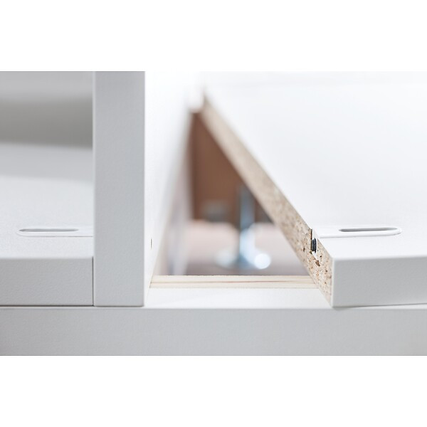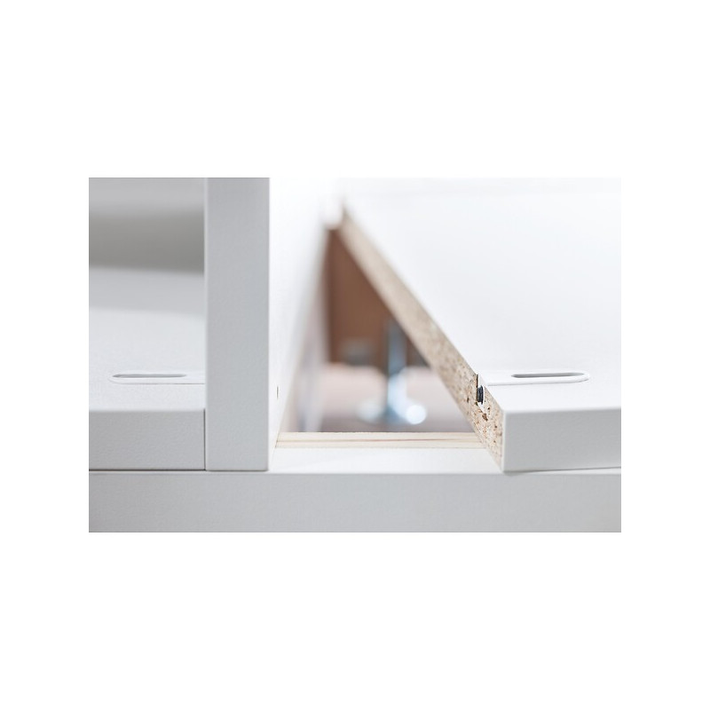 La gamme : Cabinéo est une ferrure d’assemblage nécessitant un usinage de surface. Permet un gain de temps (moins d’étapes pour la pose de la ferrure) et une résistante importante (vissage par vis bois spécifiques aux meubles).Permet de livrer les meubles à plat avec les ferrures pré-montées. •