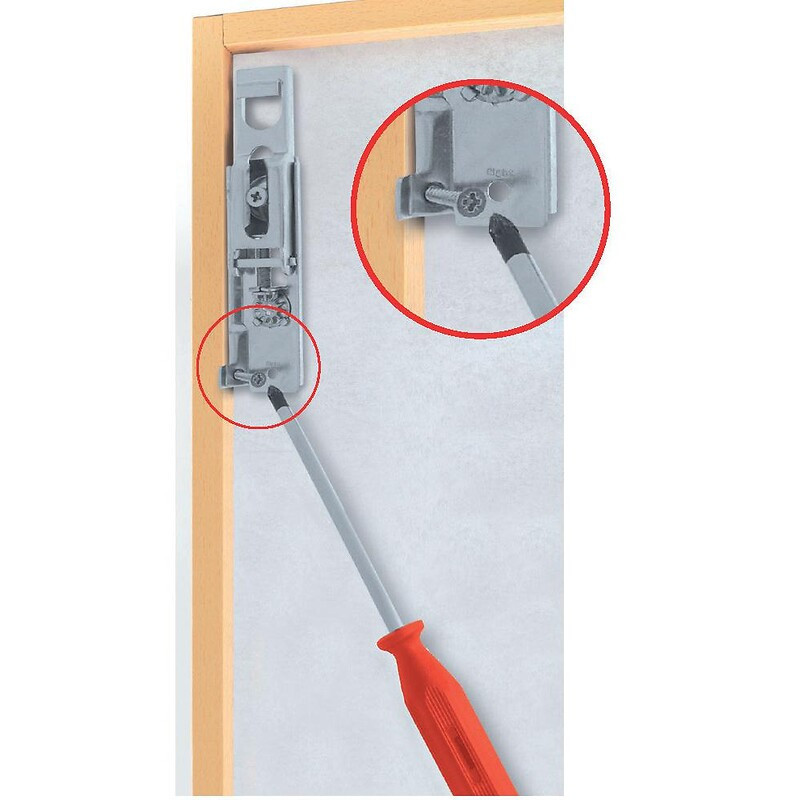 Plus d'informations pour choisir votre produit : Les charges maximales admissibles des systèmes d'accrochage pour meubles suspendus indiquées ici sont le résultat d'essais effectués avec des outillages conformes à la norme DIN 68840 ou DIN 68840 06/2004 (meubles hauts), normes EN 14749, EN 14688 et ISO 7170 (meubles bas) et s'appliquent au produit correctement positionné et monté, sans tenir compte des variables de construction du meuble final.Nous recommandons de respecter les cotes indiquées sur les plans et d'effectuer un essai sur un de vos meubles, assemblé conformément aux directives en vigueur dans les pays où vous allez commercialiser vos produits, auprès d'instituts accrédités. La charge maximale admissible est déterminée par les facteurs suivants : 1 - Dimensions et matériaux du meuble.2 - Appui de la suspension au dessus (A) et au fond (B) du meuble. 3 - Rigidité du dessus. 4 - Présence, position et quantité de tourillons, jonctions et colle. 5 - Présence, épaisseur du fond (A), profondeur du fraisage (B) et dimensions de la découpe (C, D). 6 - Type, diamètre et longueur des vis employées. 7 - Suspension accrochée à la barre de façon seulement partielle.8 - Sollicitations dynamiques. Livrés par jeu de 2 suspensions : 1 droite + 1 gauche. Commander séparément les plaquettes de fixation. •