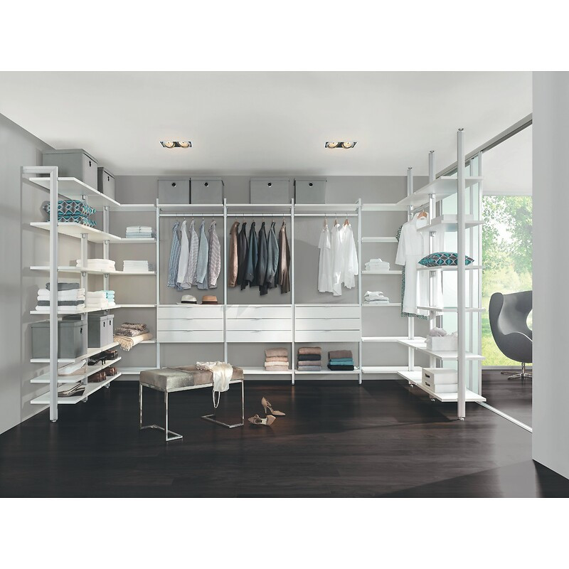 La gamme : Clos-it est un système de dressing modulable en aluminium. Idéal pour l'agencement de magasin mais aussi pour le résidentiel. Pose des colonnes en murale ou du sol et plafond.Mixer les solutions : tablette en bois ou verre, caisson avec tiroirs, barre de penderie…Possibilité de réaliser un dressing sous-pente. •