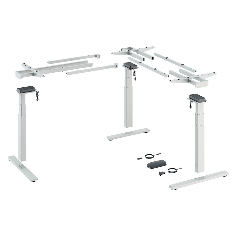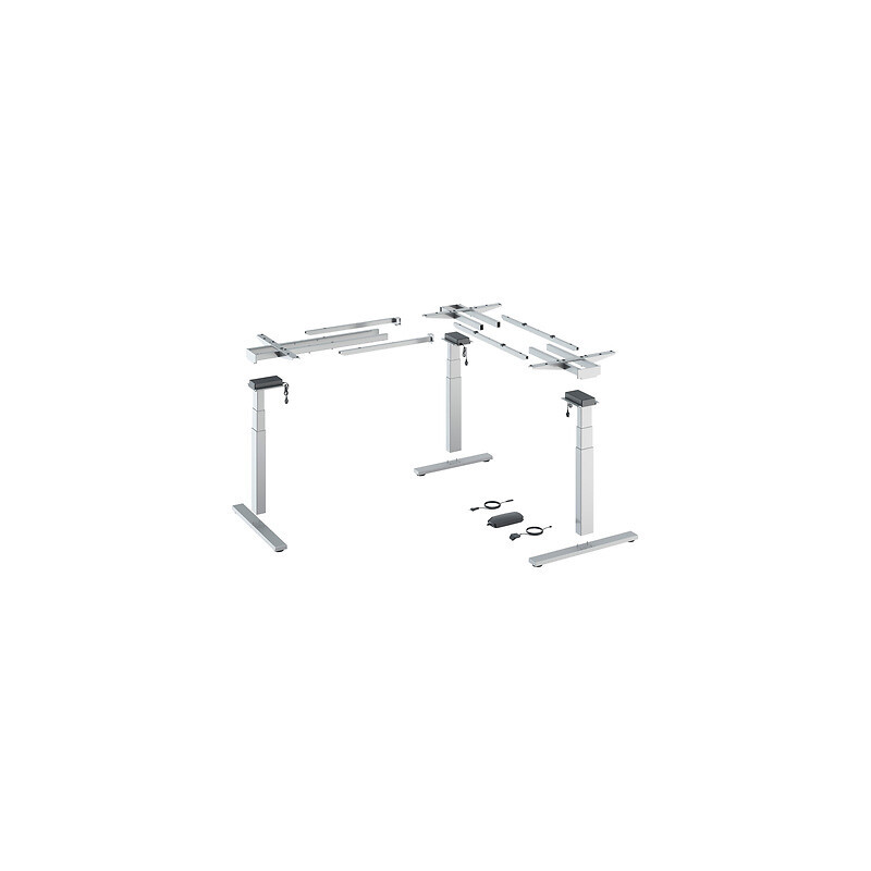 La gamme : Spécialement conçue pour les professionnels la gamme Steelforce propose des moteurs puissants permettent de supporter des charges dynamiques élevées : ces produits peuvent supporter rapidement et sans bruit une charge pouvant atteindre 120 kg, voire 150 kg pour les solutions en angle. Vous pouvez choisir, en plus, la forme qui vous plaît selon vos besoins. Nos modèles « Highline » sont particulièrement élégants : les supports de plateau de table sont montés en retrait sur les côtés et sont ainsi invisibles sous le plateau. Bon à savoir : tous nos produits de notre PROFESSIONAL LINE disposent d’un démarrage en douceur et d'une détection des collisions au moyen d’un capteur gyroscopique. Les modèles de bureaux et de tables à réglage électrique consomment très peu d’énergie en mode veille (0,1 W = seulement 8,76 kWh/an). Kit complet, voir composition sur le WEB.Kit composé de : - 3 colonnes de levage. - 2 embases de piètement Highline de 736 mm. - 2 supports de plateau de table Highline de 600 mm. - 2 traverses télescopiques. - 1 commande électronique. - 1 interrupteur à main. - 1 câble de raccordement au réseau de 1800 mm avec fiche Euro. -Accessoires et instrcutions de montage. •
