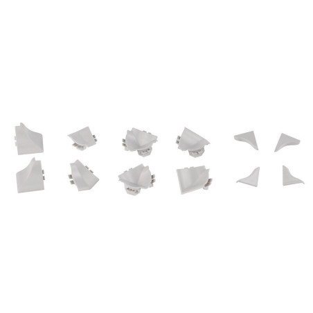 Jeu de 12 pièces composé de : - 2 embouts droits, - 2 embouts gauches, - 8 angles - 2 à 90°, 2 à 135°intérieur, 2 à 90° extérieur, 2 à 90° 3 directions. •