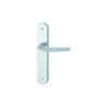 Ensemble monobloc.Matière : aluminium.Entraxe de fixation : 195 mm.Entraxe de serrure : 70 mm.Plaque : 240 x 40 mm.Saillie de la béquille : 47 mm.Livré avec carré 7 mm.