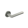 Matière : zamak.Pour porte épaisseur 45 mm.Longueur de la béquille : 132 mm.Ressort de rappel intégré.Saillie de la béquille : 63 mm.Rosace ronde diamètre 52 mm. épaisseur 5 mm avec entraxe de fixation 38 mm.Livrée avec carré 7 mm. sans rosace de fonction.