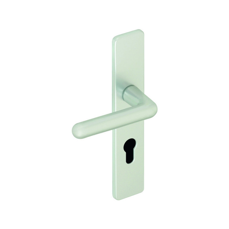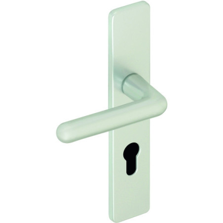 Ensemble monobloc pour porte épaisseur 40 mm.Plaque renforcée avec sous-plaque en polyamide.Matière : aluminium.Entraxe de fixation : 195 mm.Entraxe de serrure : 70 mm.Plaque : 220 x 42 mm.Saillie de la béquille : 58 mm.Livré avec carré de 7 mm.