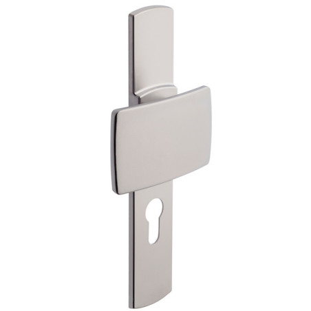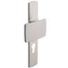 Ensemble de sécurité aileron de tirage/béquille sur plaques longues avec protecteur de cylindre. pour porte d'entrée.Ensemble monobloc pour porte épaisseur 38 à 48 mm.Réversible.Protecteur de cylindre auto-adaptable pour cylindre dépassant 10-15 mm.Piliers taraudés intégrés pour fixation traversante avec pastille anti-perçage.Vis de fixation M6 invisibles.Matière : zamak.Entraxe de fixation: 195 mm.Entraxe de serrure: 70 mm.Plaque extérieure :245 X 56 X 15 mm.Longueur de la béquille: 120 mm.Saillie de la béquille: 65 mm.Aileron de tirage hauteur 55 mm. largeur 75 mm.Livré avec carré 7 mm.