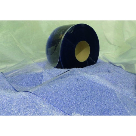 Lanière souple en PVC - Largeur : 200 mm - Coloris : bleu transparent - Longueur : 25 mètres