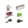 Kit de synchronisation pour 2 portes en opposition de80 Kg et 2.2 m d’ouverture maxi. comprenant :- 4 montures 13218 avec 4 platines 13036- 2 butées d’arrêt réglables 11213- 2 butées 11213N- Éléments de synchronisation- 1 Buly (niveau à bulle) - 2 guides 1103RRail à commander séparément.