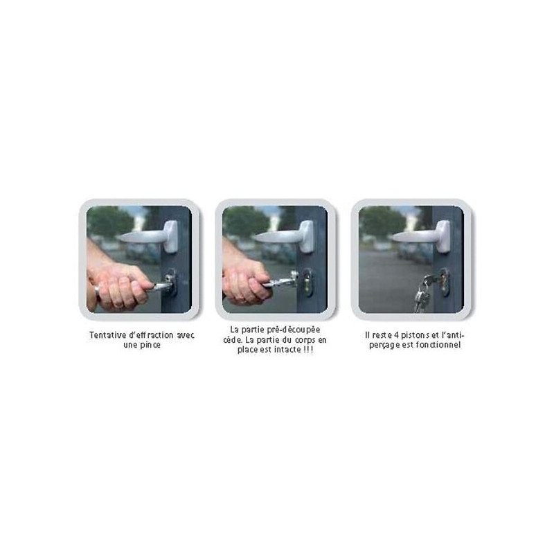 Finition : Laiton nickelé satiné - Type : Double - Fonction : Varié - Nombre de clés : 5 - Indice de sécurité : 3 - Nombre de goupilles : 6 - Unité de vente : (1 pièce) •