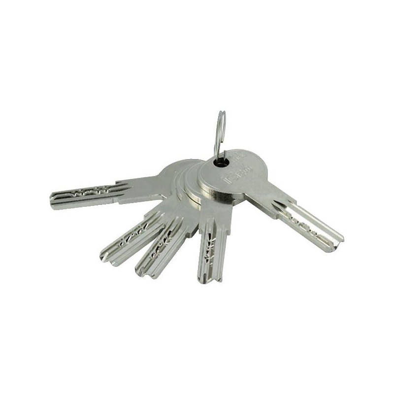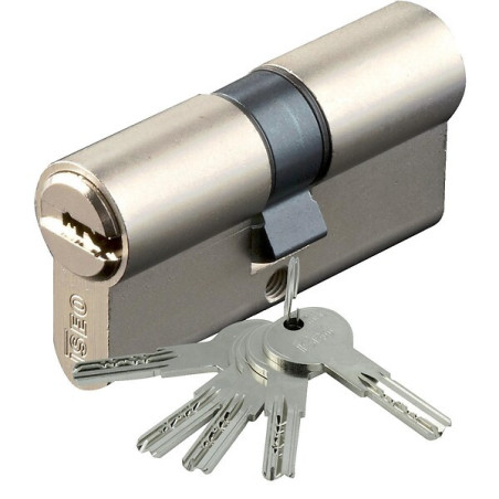 Finition : Laiton nickelé - Type : Double - Nombre de goupilles : 6 - Fonction : Varié - Nombre de clés : 5 - Indice de sécurité : 3 - Unité de vente : (1 pièce) •