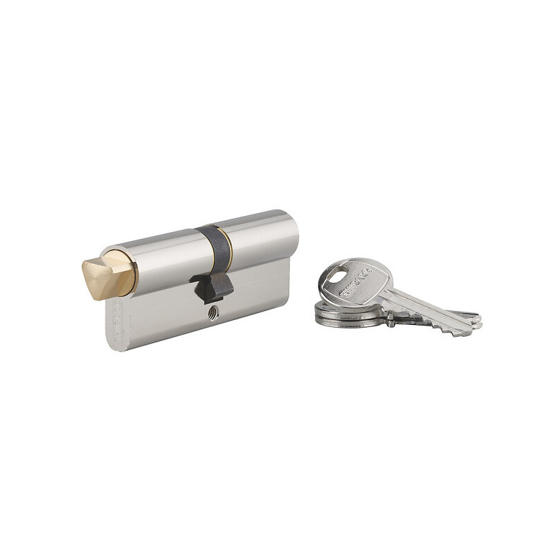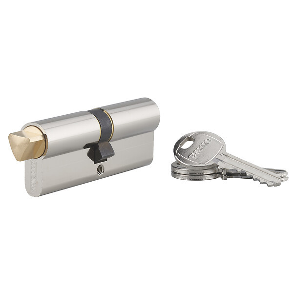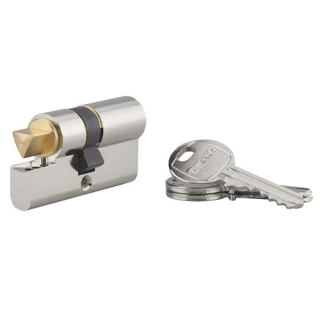 Finition : Laiton nickelé - Type : Cylindre de sûreté - Nombre de clés : 3 - Protection antiperçage : Oui - Unité de vente : (1 pièce) •