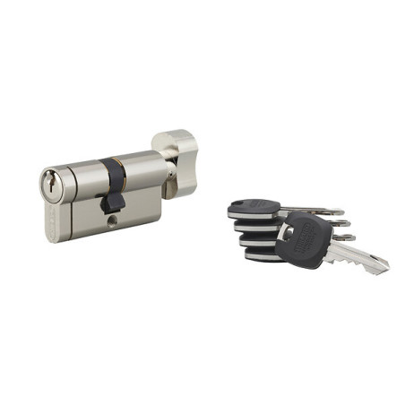 Finition : Nickelé - Type : Cylindre de sûreté - Nombre de goupilles : 5 - Modèle : Cylindre à bouton - Nombre de clés : 5 - Protection antiperçage : Oui - Protection anticrochetage : Oui - Dimensions (millimètre (mm)) : 30*30 - Unité de vente : (1 pièce) •