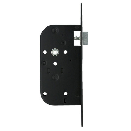 Entraxe mm : 70 - Axe de la serrure : 50 - Fonction de la serrure : Bec-de-cane - Forme des bouts de la tétière : Ronds - Avec gâche : Non - Réversible : Oui - Type de pose : À larder - Nombre de points : 1 - Matière du coffre : Acier - Finition de la têtière : laqué noir - Largeur de la têtière (mm) : 20 - Unité de vente : (1 conditionnement) •