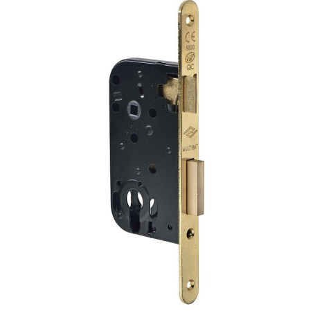 La gamme : Serrures de sûreté à cylindre européen, pêne dormant et demi-tour.Fouillot à carré de 7 mm à équerre.Ressort renforcé.Coffre acier.Têtière : 230 x 20 mm.Entraxe : 70 mm.Réversible (à 1 seule vis).Norme du produit : Conformes à la norme NF EN 12209. NF QC en axe à 50 mm, têtières noires et inox, grade 3 et laitonnées et nickelées grade 2.Livrée avec gâche, sans cylindre. •