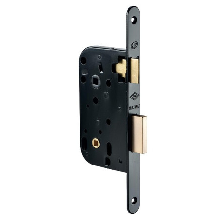 Serrure à larder pêne demi-tour et pêne dormant à condamnation axe 50 mm -Têtière bouts ronds noire- 260 000 - JPM