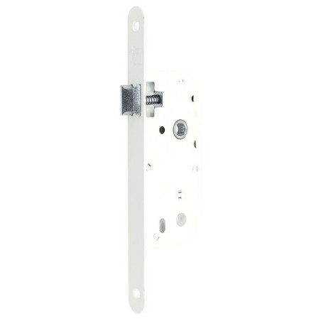 Main : Droite réversible - Axe de la serrure : 40 - Fonction de la serrure : Pêne dormant et demi-tour - Forme des bouts de la tétière : Ronds - Réversible : Oui - Avec gâche : Non - Type de pose : À larder - Conditionnement : 1 - Nombre de points : 1 - Matière du coffre : Acier - Finition de la têtière : Epoxy blanc - Largeur de la têtière (mm) : 20 - Unité de vente : (1 pièce) •