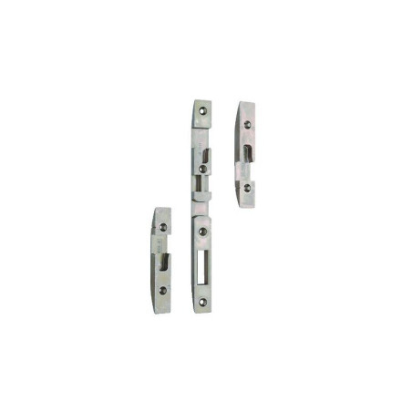 La gamme : En acier zingué.Coffre de : 210 x 70 x 13 mm (axe à 50 mm) ou 210 x 60 x 13 mm (axe à 40 mm).Têtière de 2150 x 16 ou 18 x 2,5 mm recoupable.Fouillot de 7 mm, axe à 1045 mm du sol.Entraxe : 70 mm.Condamnation des 3 points de verrouillage par la béquille ou par claquement de la porte.Relèvement possible de la poignée à 90° permettant l'ouverture d'un châssis vitré.Pêne dormant en acier, à 1 tour de clé.Descente forcée des galets par relevage de la béquille.Rouleaux réglables.Main universelle.Jeu de 3 gâches. •