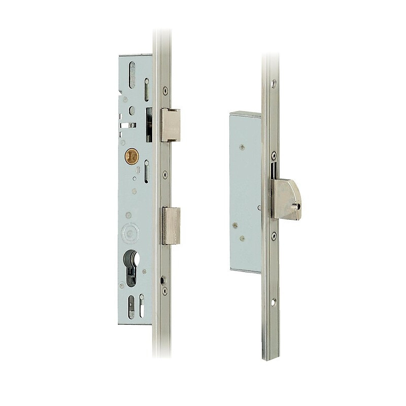 Fonction de la serrure : À cylindre européen - Réversible : Oui - Nombre de points : 3 - Entraxe (mm) : 92 - Dimension du carré (mm) : 8 - Hauteur de la têtière (mm) : 1860 - Largeur de la têtière (mm) : 24 - Hauteur du coffre central (mm) : 244 - Unité de vente : (1 pièce) •