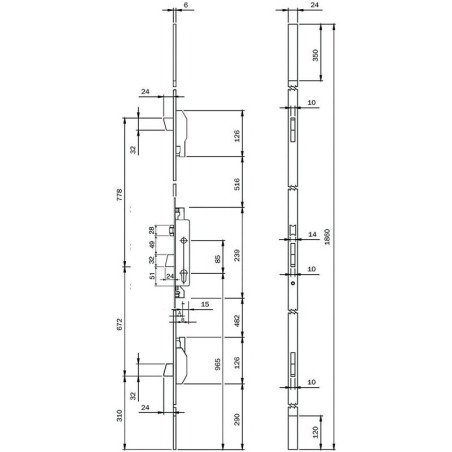Forme de la têtière : U - Fonction de la serrure : À cylindre européen - Type de pose : À larder - Nombre de points : 3 - Entraxe (mm) : 85 - Dimension du carré (mm) : 8 - Hauteur de la têtière (mm) : 1860 - Largeur de la têtière (mm) : 24 - Unité de vente : (1 pièce) •