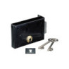 Finition : Noir - Mode d'ouverture de la serrure : Pêne dormant - Orientation de la serrure en applique : Horizontale - Avec gâche : Non - Pêne réversible : Non - Type de pose : En applique - Nombre de points : 1 - Matière du coffre : Acier - Longueur du cylindre (mm) : 40 - Unité de vente : (1 pièce) •