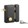 Finition : Noir - Orientation de la serrure en applique : Verticale - Avec gâche : Oui - Type de pose : En applique - Nombre de points : 1 - Matière du coffre : Acier embouti - Axe à la clé (mm) : 45 - Hauteur du coffre (mm) : 130 - Largeur du coffre (mm) : 76 - Longueur du cylindre (mm) : 45 - Unité de vente : (1 pièce) •