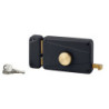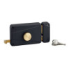 Finition : Noir - Mode d'ouverture de la serrure : À tirage - Orientation de la serrure en applique : Horizontale - Avec gâche : Oui - Type de pose : En applique - Nombre de points : 1 - Matière du coffre : Acier embouti - Axe à la clé (mm) : 70 - Hauteur du coffre (mm) : 90 - Largeur du coffre (mm) : 140 - Longueur du cylindre (mm) : 45 - Unité de vente : (1 pièce) •