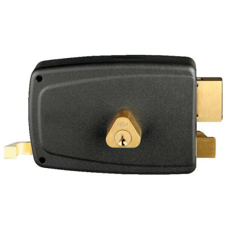 Finition : Noir - Mode d'ouverture de la serrure : À tirage - Orientation de la serrure en applique : Horizontale - Avec gâche : Non - Pêne réversible : Oui - Type de pose : En applique - Nombre de points : 1 - Matière du coffre : Acier - Axe à la clé (mm) : 70 - Hauteur du coffre (mm) : 99 - Largeur du coffre (mm) : 143 - Longueur du cylindre (mm) : 40 - Unité de vente : (1 pièce) •