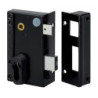 La gamme : Remplacement de la plupart des serrures en applique 1 point à profil européen réalisable grâce à cette nouvelle gamme de serrures réglables !Simple réglage à l’aide d’une clé 6 pans creux fournie.Position choisie bloquée après ajout du cylindre.Empennage spécialement étudié pour ne pas avoir à remplacer la gâche existante.Coffre cambré en acier noir et cache-cylindre noir assorti.Pêne dormant en acier avec course de 20 mm réglable de 0 à 5 mm.Pêne ½ tour en zamak réversible avec course de 16 mm réglable de 0 à 5 mm.Livrées avec gâche, clé 6 pans creux et sans cylindre. •