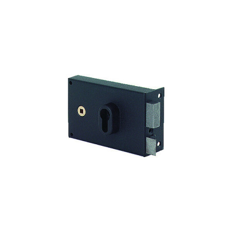 Finition : Époxy noir - Mode d'ouverture de la serrure : À fouillot - Orientation de la serrure en applique : Horizontale - Type de fermeture de la serrure en applique : À cylindre européen - Avec gâche : Oui - Pêne réversible : Non - Type de pose : En applique - Nombre de points : 1 - Matière du coffre : Acier - Axe à la clé (mm) : 56 - Hauteur du coffre (mm) : 88 - Largeur du coffre (mm) : 140 - Axe au fouillot (mm) : 113 - Dimension du carré (mm) : 6 - Unité de vente : (1 boîte) •