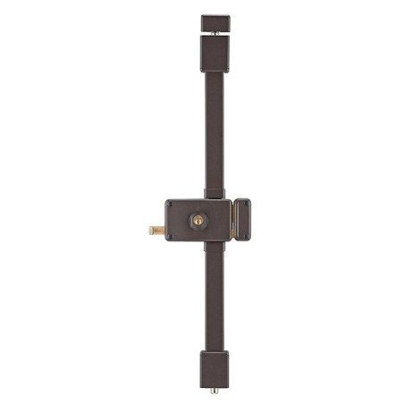 La gamme : Boîtier en acier embouti ép. 20/10ème, tringle standard permettant une condamnation de porte de 1,65 m à 2,25 m.Mécanisme intérieur type équerre permettant la manoeuvre du 1/2 tour avec la clé, de l’intérieur comme de l’extérieur.Pêne dormant et 1/2 tour en laiton massif.Pêne haut et bas en acier ø 16 mm sur tringles télescopiques en acier permettant un ajustement très précis à la longueur désirée et ne nécessitant aucune recoupe.Cache tringle, guides et gâches de pênes haut et bas en acier ne laissant apparaître aucune vis de fixation.Finition : peinture époxy.Livrées avec 4 clés. •