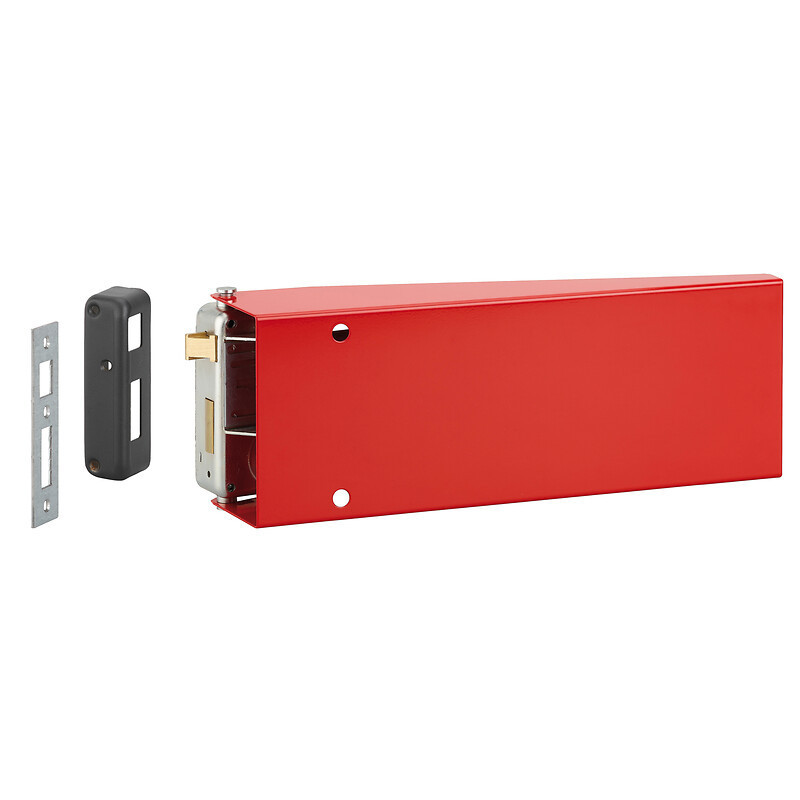 Matière du coffre : Acier zingué embouti - Pour cylindre : Profilé européen 30*65 - Pour porte : Bois ou tôle - Finition : Époxy rouge - Axe à la clé (mm) : 45 - Unité de vente : (1 pièce) •
