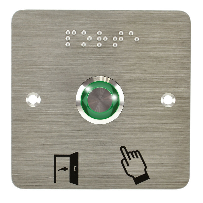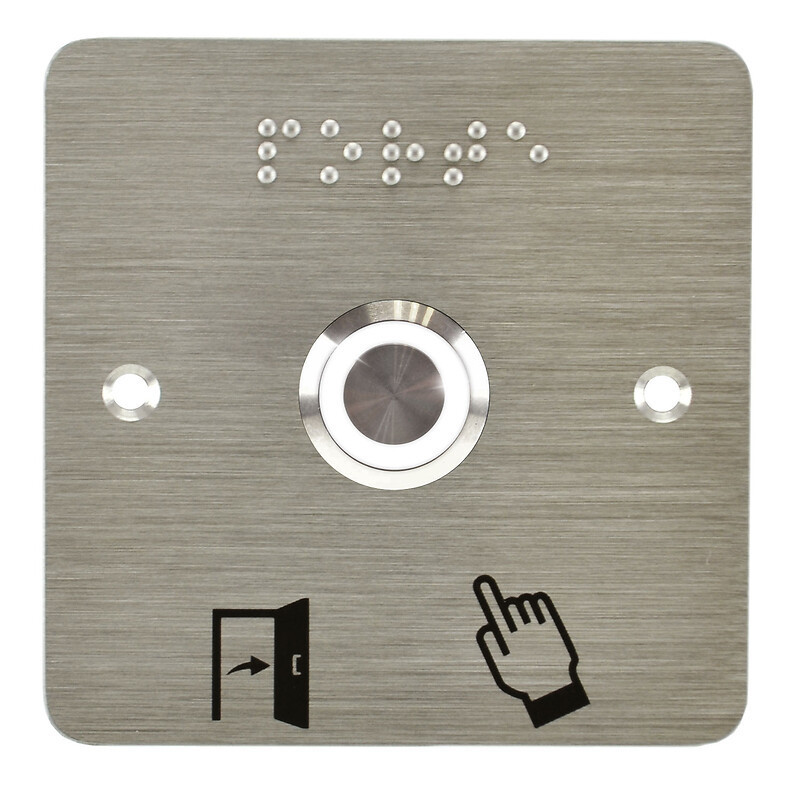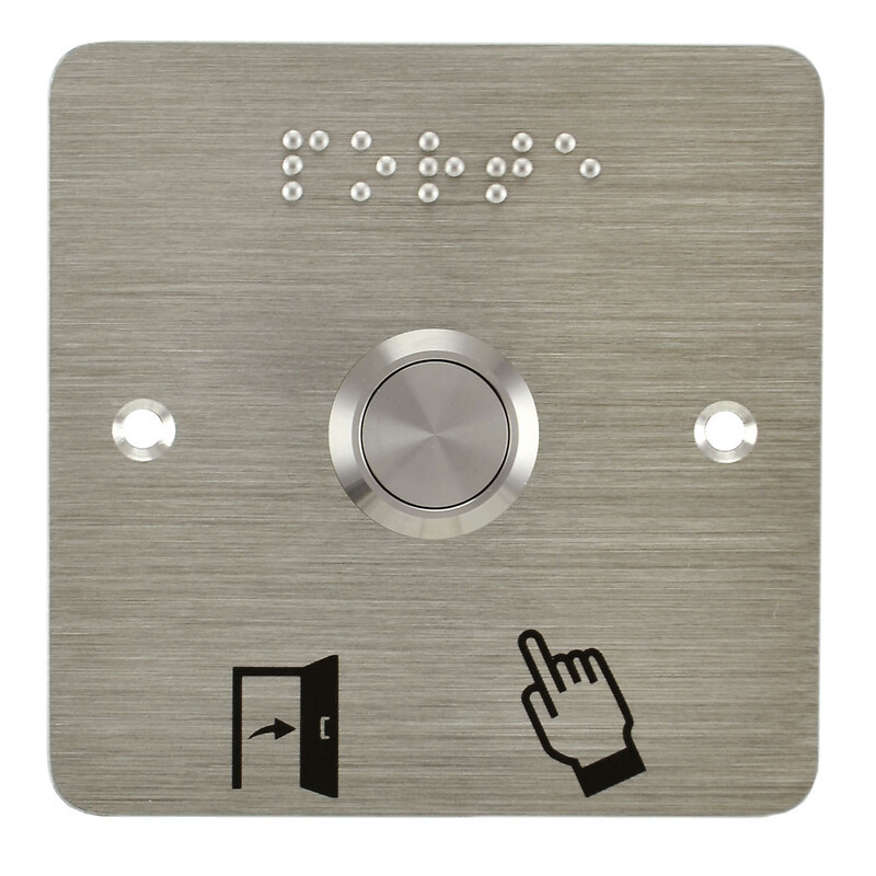Bouton poussoir acier inoxydable sur plaque carrée précablé •